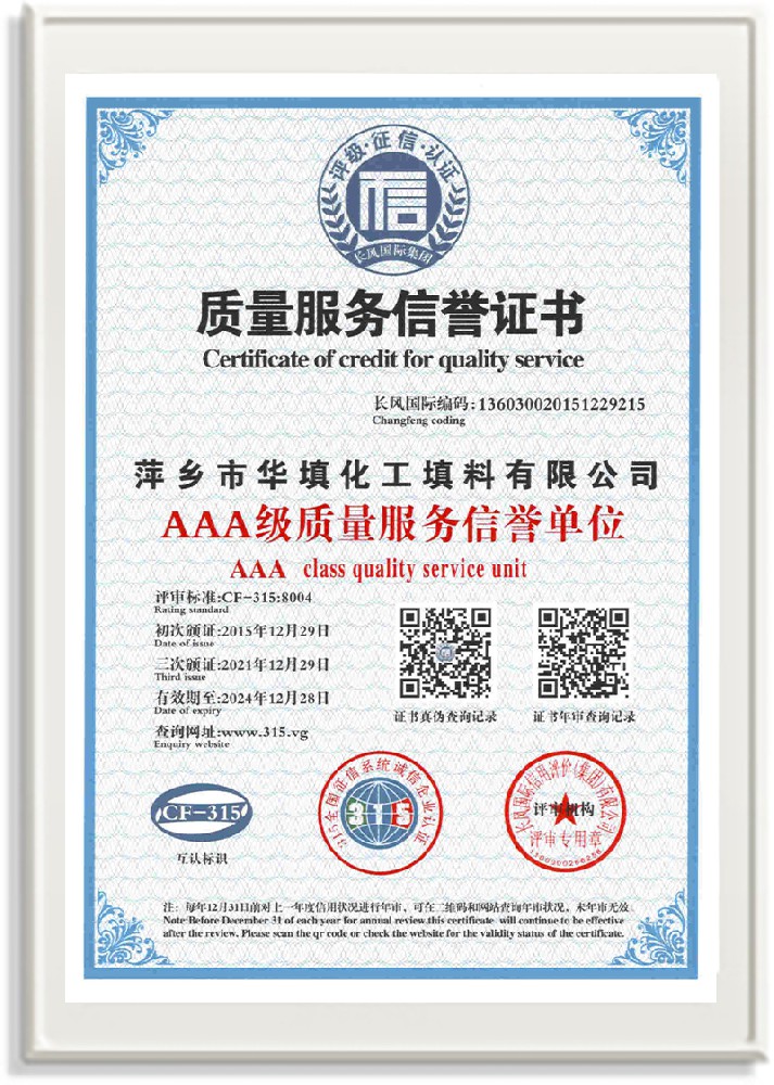 萍鄉(xiāng)市華填化工填料有限公司,位于320國道、109國道、浙贛鐵路、昌金高速公路貫穿其中,交通便利,是江西西部一顆燦爛明珠,創(chuàng)建于20世紀(jì)70年代初期,是中國石油天然氣股份有限公司“能源一號網(wǎng)”會員企業(yè)、中國石化物資采購電子商務(wù)網(wǎng)絡(luò)和中國海洋石油總公司采辦業(yè)務(wù)系統(tǒng)成員單位,是上海大學(xué)江西材料基因組工程產(chǎn)業(yè)研究院工業(yè)陶瓷產(chǎn)業(yè)創(chuàng)新聯(lián)盟基地,且通過ISO9001:2015質(zhì)量管理體系、ISO14001:2015環(huán)境管理體系、ISO45001:2018職業(yè)健康安全管理體系認(rèn)證的化工填料生產(chǎn)企業(yè)。公司擁有陶瓷、塑料、金屬填料、催化劑、活性氧化鋁、分子篩等產(chǎn)品生產(chǎn)線,現(xiàn)有固定資產(chǎn)3616萬元,占地面積3.8萬平方米。公司具有悠久的生產(chǎn)歷史、雄厚的技術(shù)力量和先進(jìn)的生產(chǎn)工藝設(shè)備,可生產(chǎn)工業(yè)瓷球(支撐劑)、陶瓷、金屬、塑料質(zhì)的規(guī)整、散堆化工填料及分子篩、催化劑、生化濾料、活性氧化鋁、石化助劑、活性炭、環(huán)保材料、耐火材料等系列的200多種規(guī)格型號產(chǎn)品。
